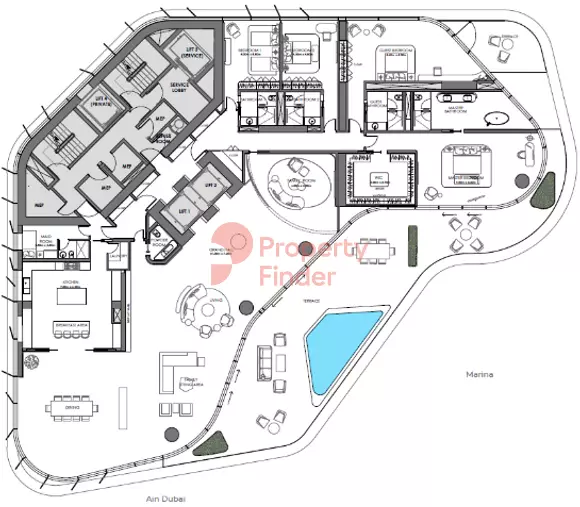 -The Penthouses – Sky residences with double-height living areas, private pools, and panoramic views.