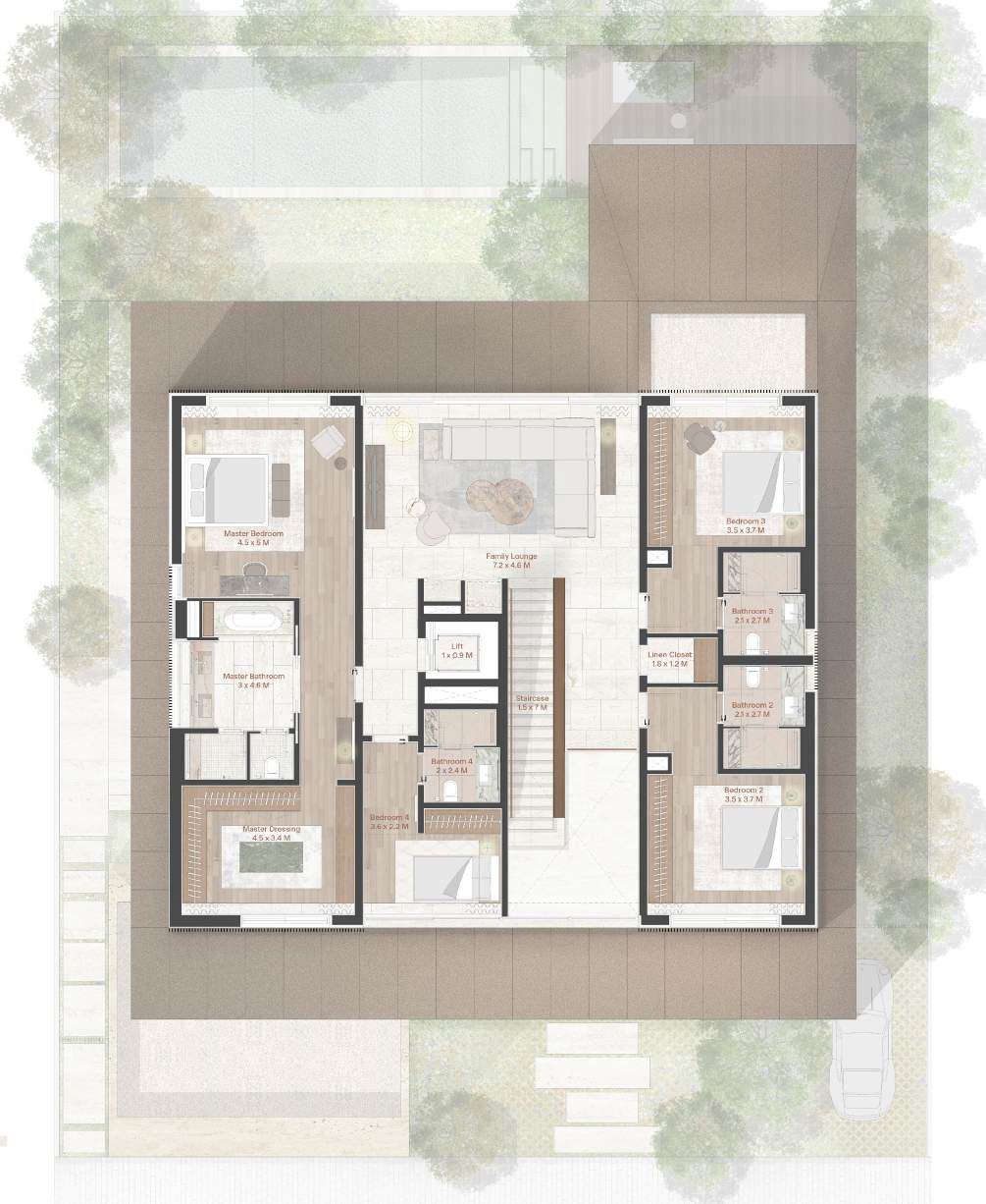 Inspired by nature, the villas at Eden Hills sit in harmony with the surrounding greenery, showcasing organic simplicity and refined modernity. Available in five-, five plus-, and six-bedroom layouts, each home features open-plan interiors, large glass façades, and generous outdoor terraces. Crafted with meticulous detail and elegant finishes, every villa reflects timeless craftsmanship and understated luxury. For those seeking full customization, prime plots are also available to build a bespoke residence.