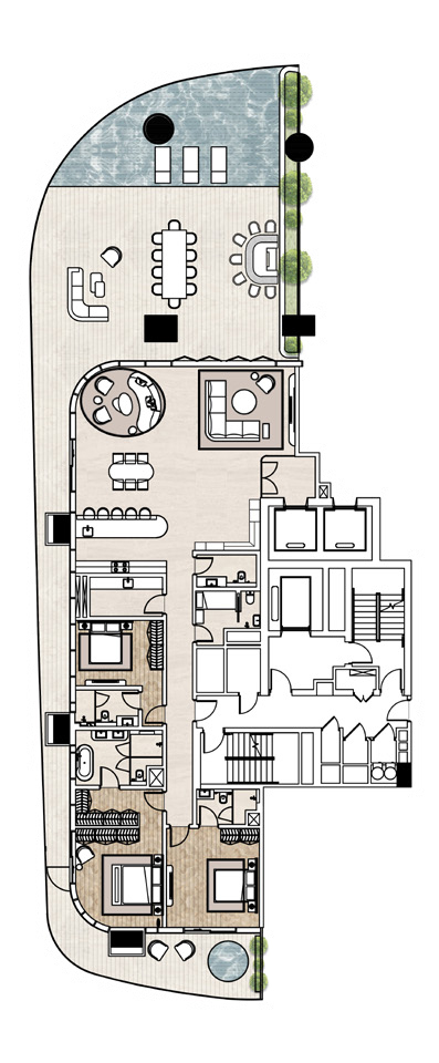 Every residence at Casa AHS is crafted with precision and artistry. Soaring six- to twelve-meter ceilings enhance the sense of space, while honed Navona Travertine, polished Paonazzo marble, antique bronze mirrors, and rich leather accents reflect refined taste. Bespoke sofas, handcrafted joinery, and curated artworks add warmth and sophistication, transforming daily life into an experience of pure luxury.