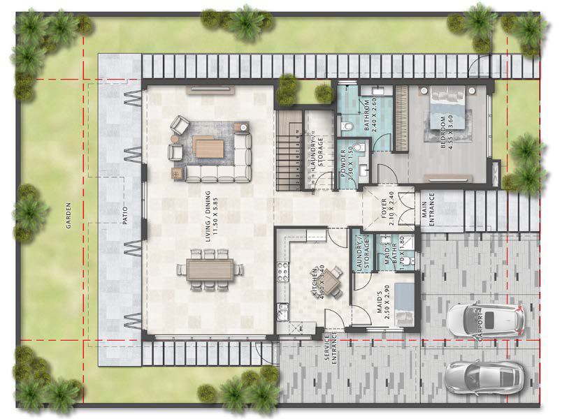 Inspired by the serenity of island life, the villas and townhouses combine modern elegance with natural beauty. Floor-to-ceiling glass, open layouts, and terraces overlooking turquoise waters create a seamless blend of indoor comfort and outdoor charm. Interiors feature Calacatta Gold porcelain, Arabescato marble, and polished walnut veneers, capturing the refined spirit of tropical living.