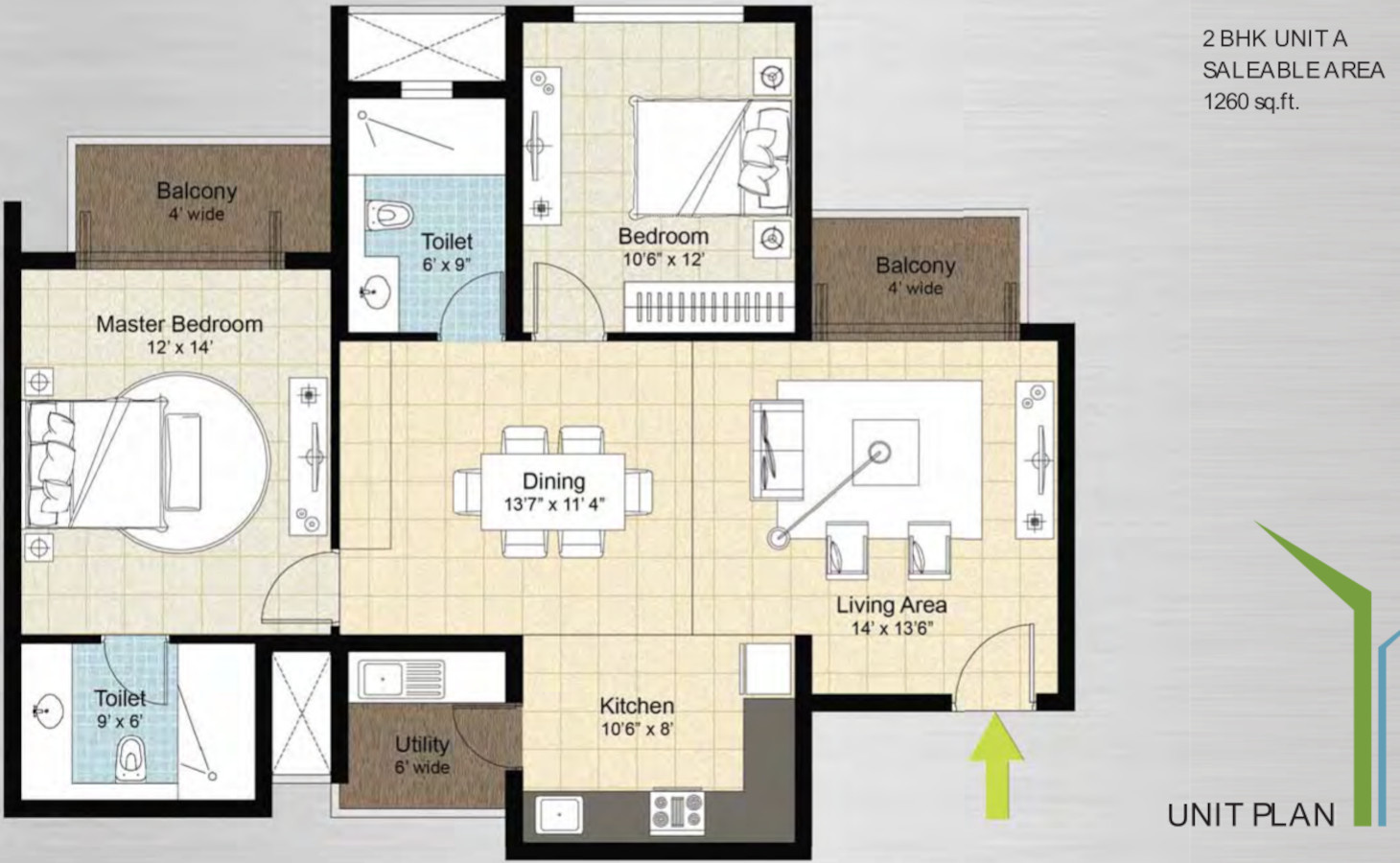 Price on Request | 2 Beds | 3 Baths | 1,239 SQ.FT.